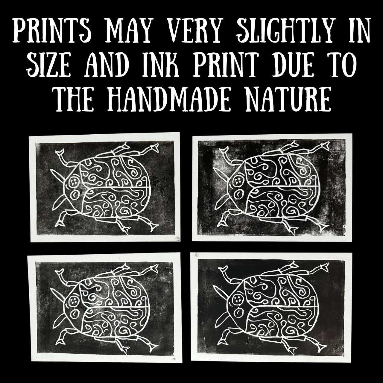Print may vary slightly in size and prink ink due to the handmade nature of each piece.